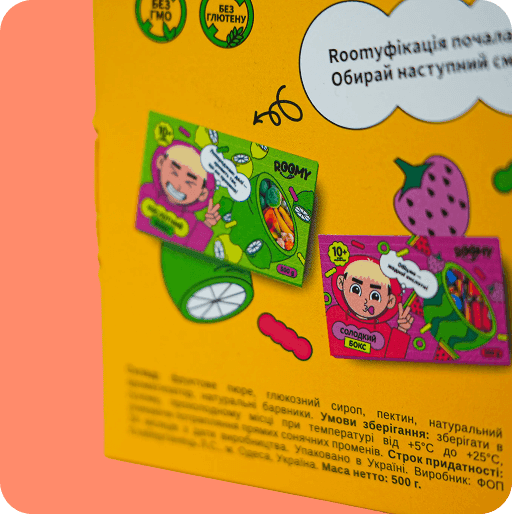 Склад: фруктовое пюре, глюкозой сироп, пектин, натуральной ароматизатор, натуральні барвники.